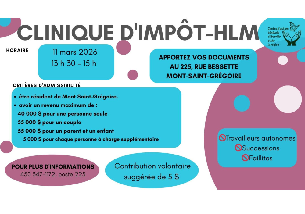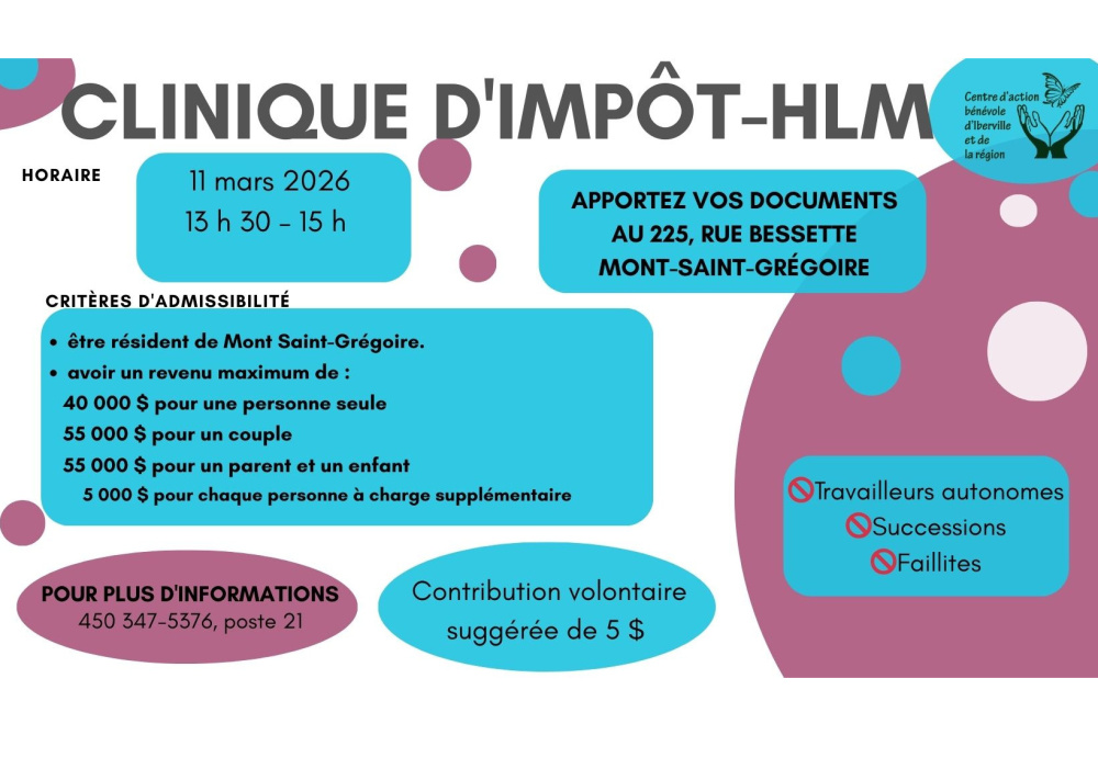 Clinique d’impôt du Centre d’action bénévole d’Iberville pour résidents admissibles