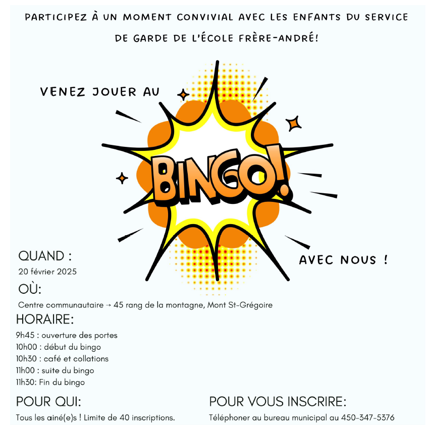Bingo inter-générationel avec le service de garde de l’école Frère-André