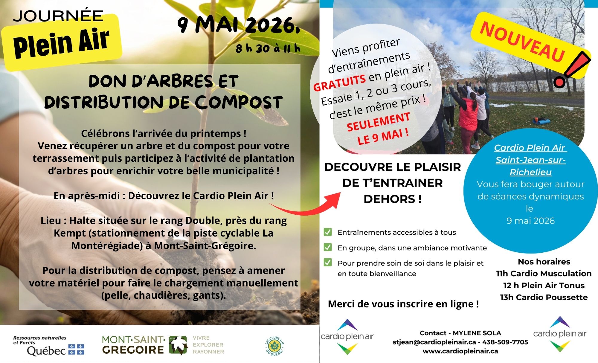 Don d’arbres, distribution de compost, plantation d’arbres et entraînements en plein air