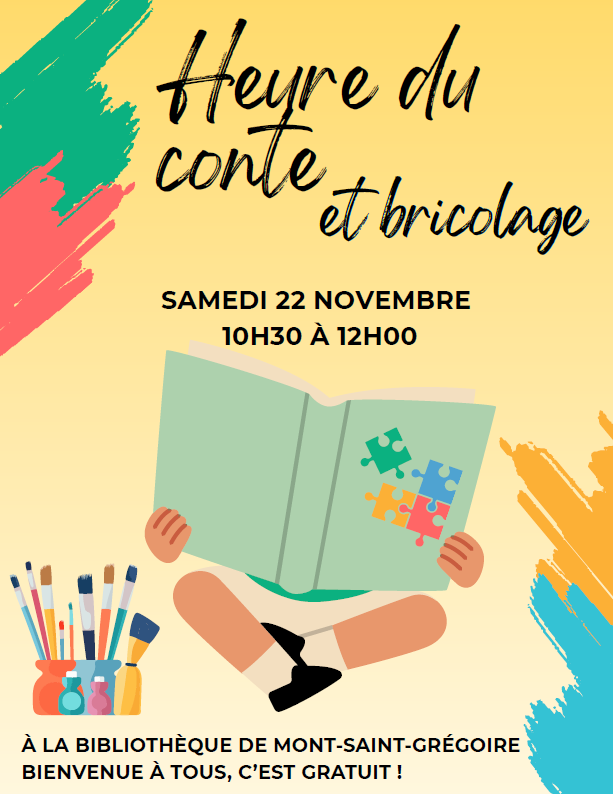 Activités - Heure du conte à la bibliothèque - Municipalité de Mont-Saint-Grégoire - Municipalité de Mont-Saint-Grégoire