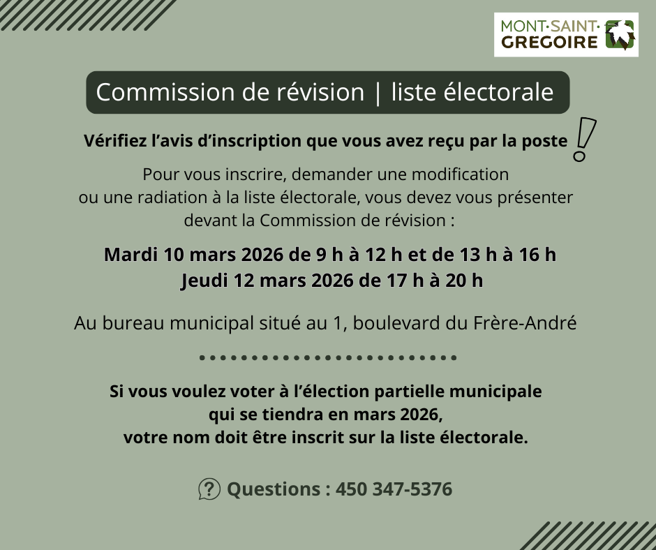 Pour les résidents de Mont-Saint-Grégoire. Gratuit.