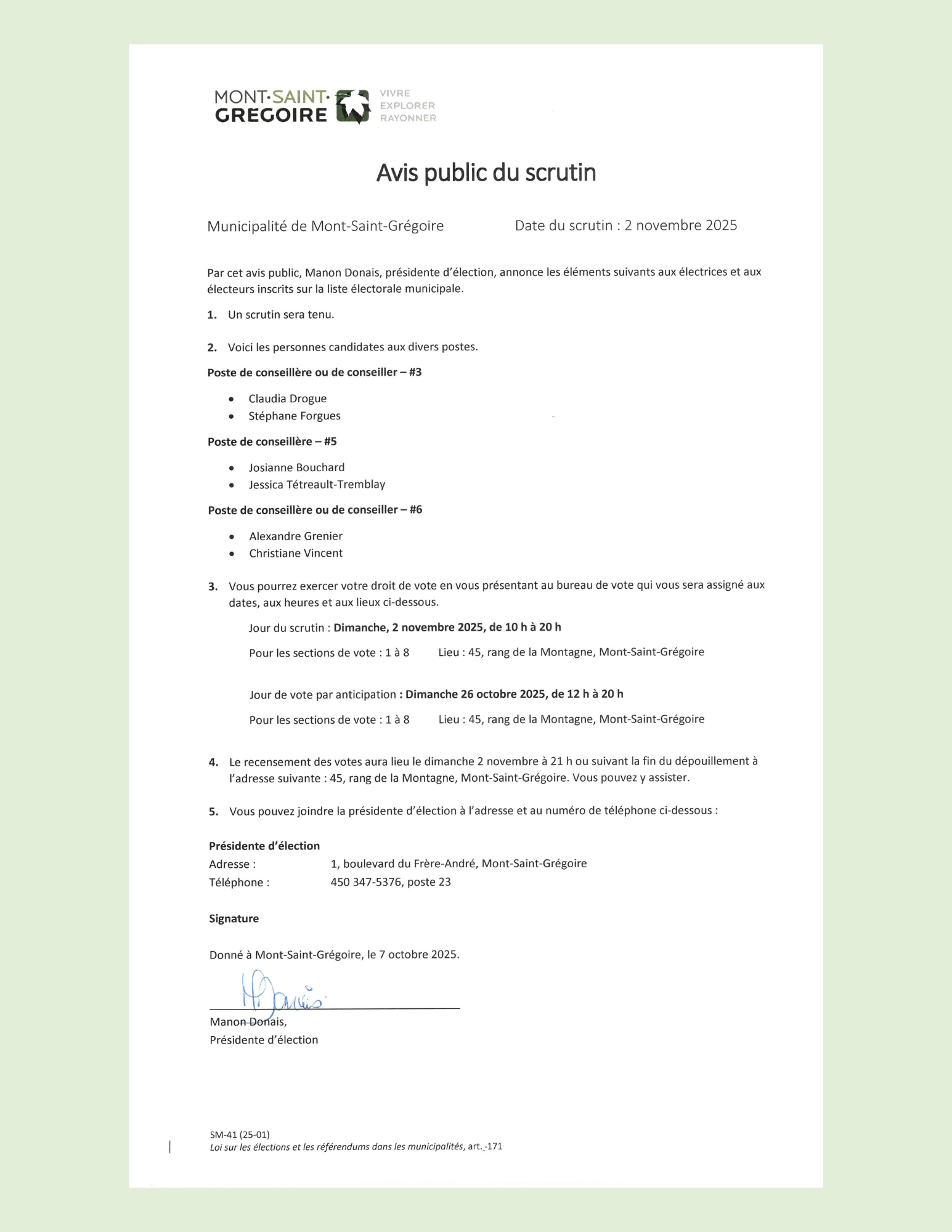 Élections municipales - Municipalité de Mont-Saint-Grégoire